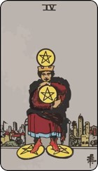 1. Ý nghĩa lá Four of Pentacles Xuôi (Upright)