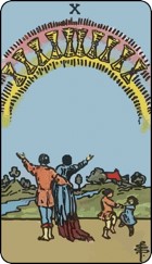 Ten of Cups là lá bài thứ mười của bộ Cups (bộ Cốc) trong Bộ ẩn phụ của bộ bài Tarot. Số 10 thể hiện sự hoàn thiện và đạt được mục tiêu. Nó cũng biểu thị một giai đoạn kết thúc và sự khởi đầu mới. Vì vậy, đây được xem là lá bài đại diện cho hạnh phúc và sự hài lòng. Nó thể hiện một gia đình hay một cộng đồng đang cùng nhau tận hưởng hạnh phúc, tình yêu.