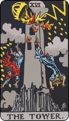The Tower là một lá bài đáng lo ngại với hình ảnh của ngọn lửa, sấm chớp, những bức tường đổ vỡ, con người đang rơi xuống, đây hoàn toàn là một khung cảnh hỗn loạn. Tòa tháp đang bị phá hủy trong lá bài được gợi nhớ đến tòa tháp Babel, niềm kiêu hãnh một thời của vương quốc Babylon cổ đại. Nói về sự kiêu ngạo của loài người trước Thiên Chúa và sự trả giá của họ.